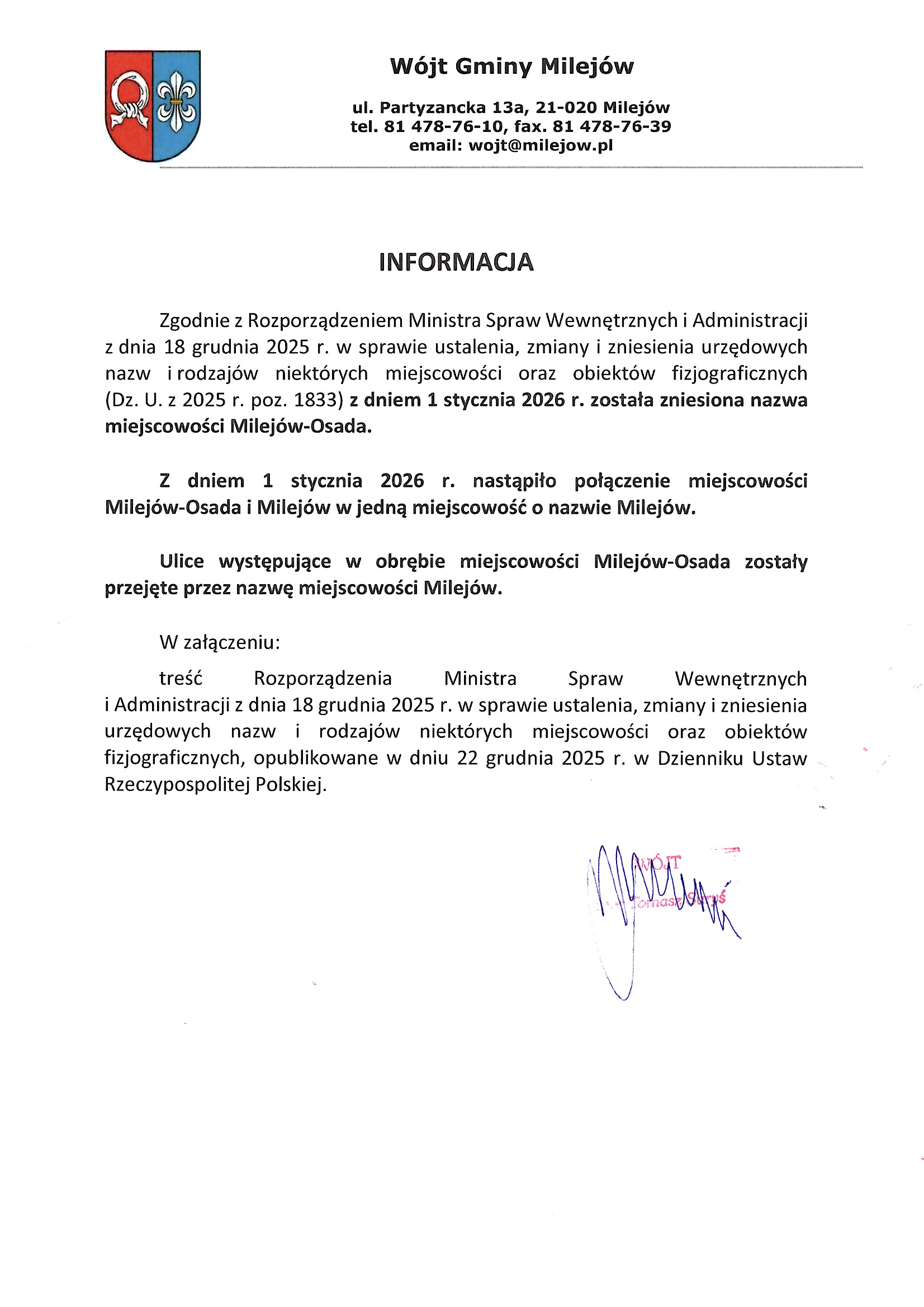 – Urząd Gminy Milejów,